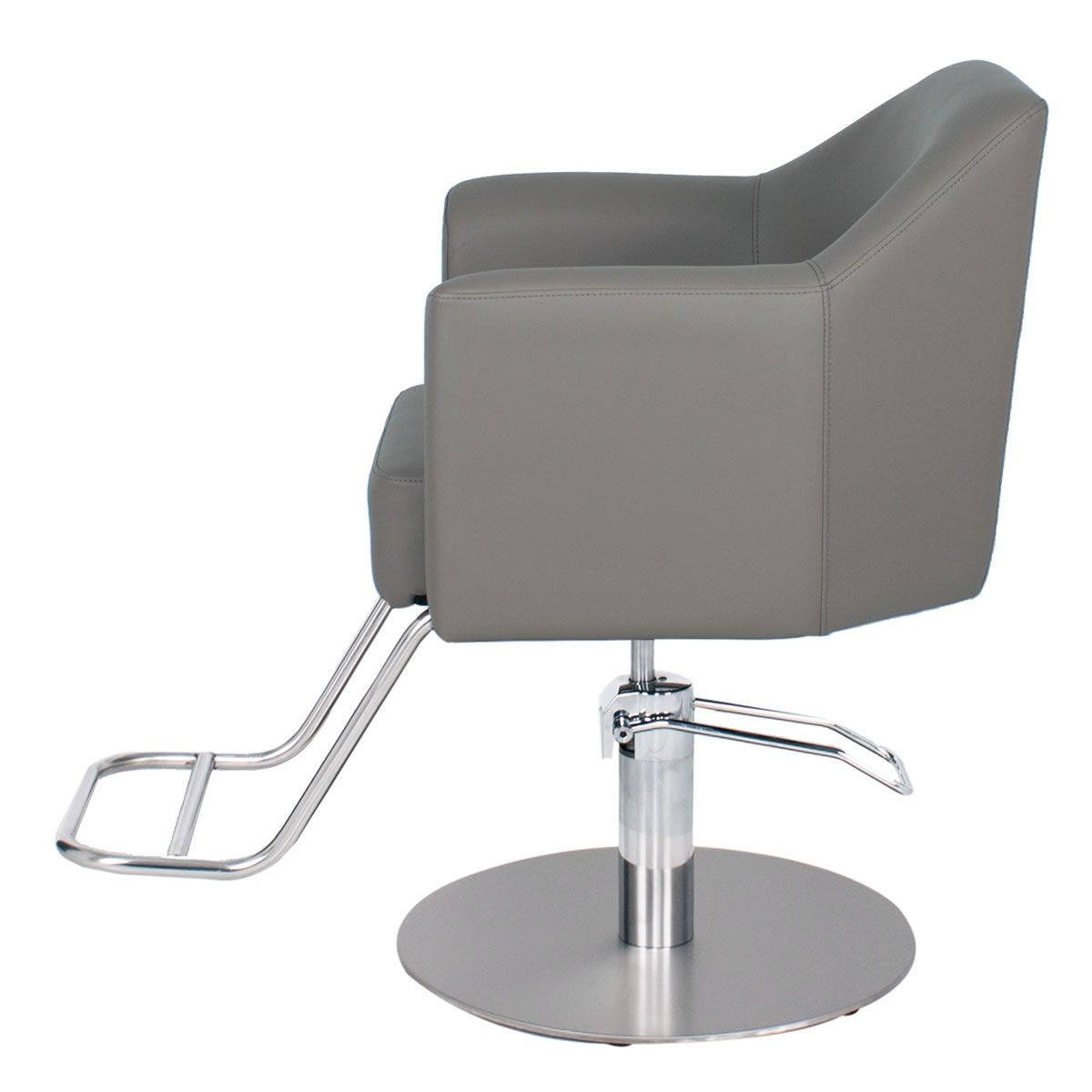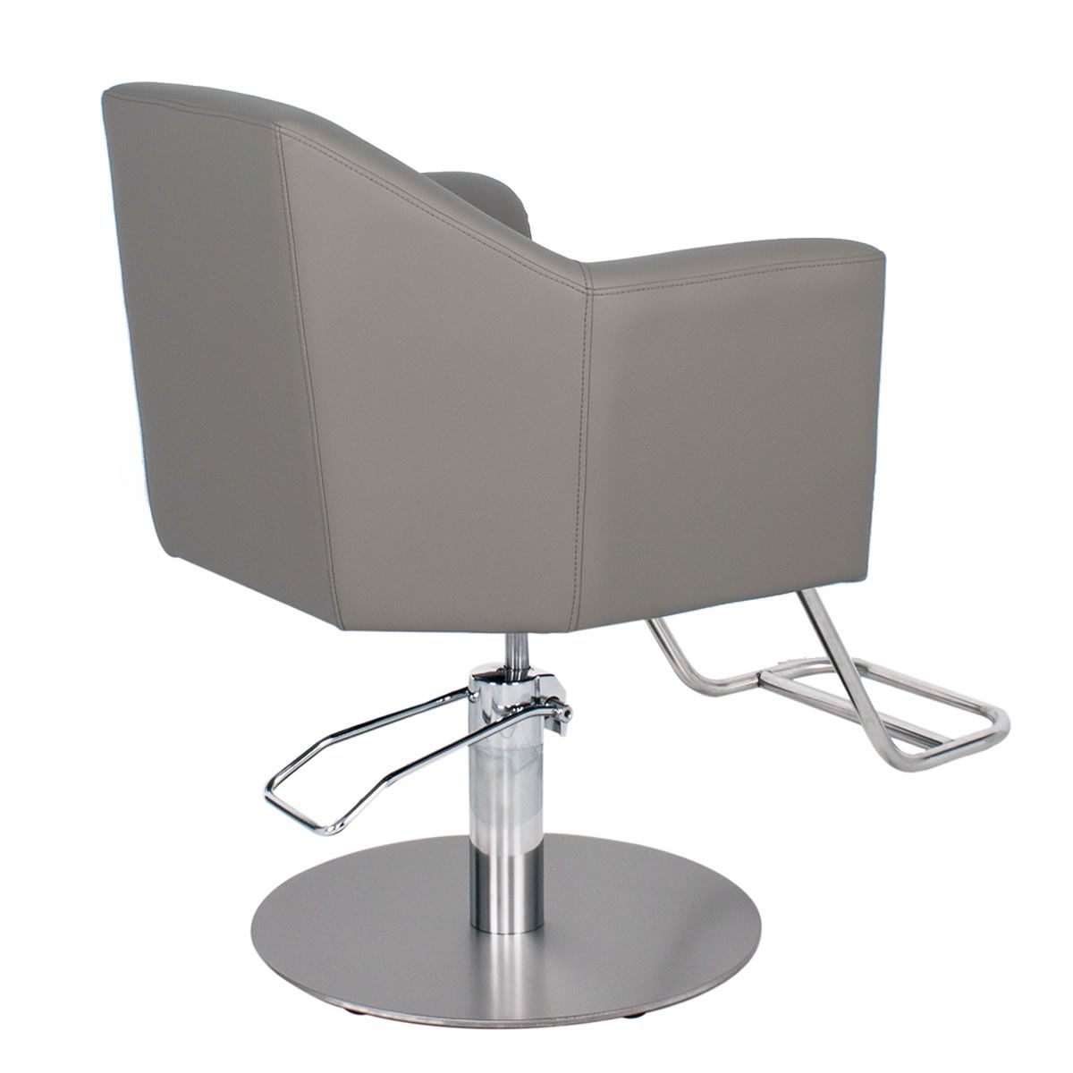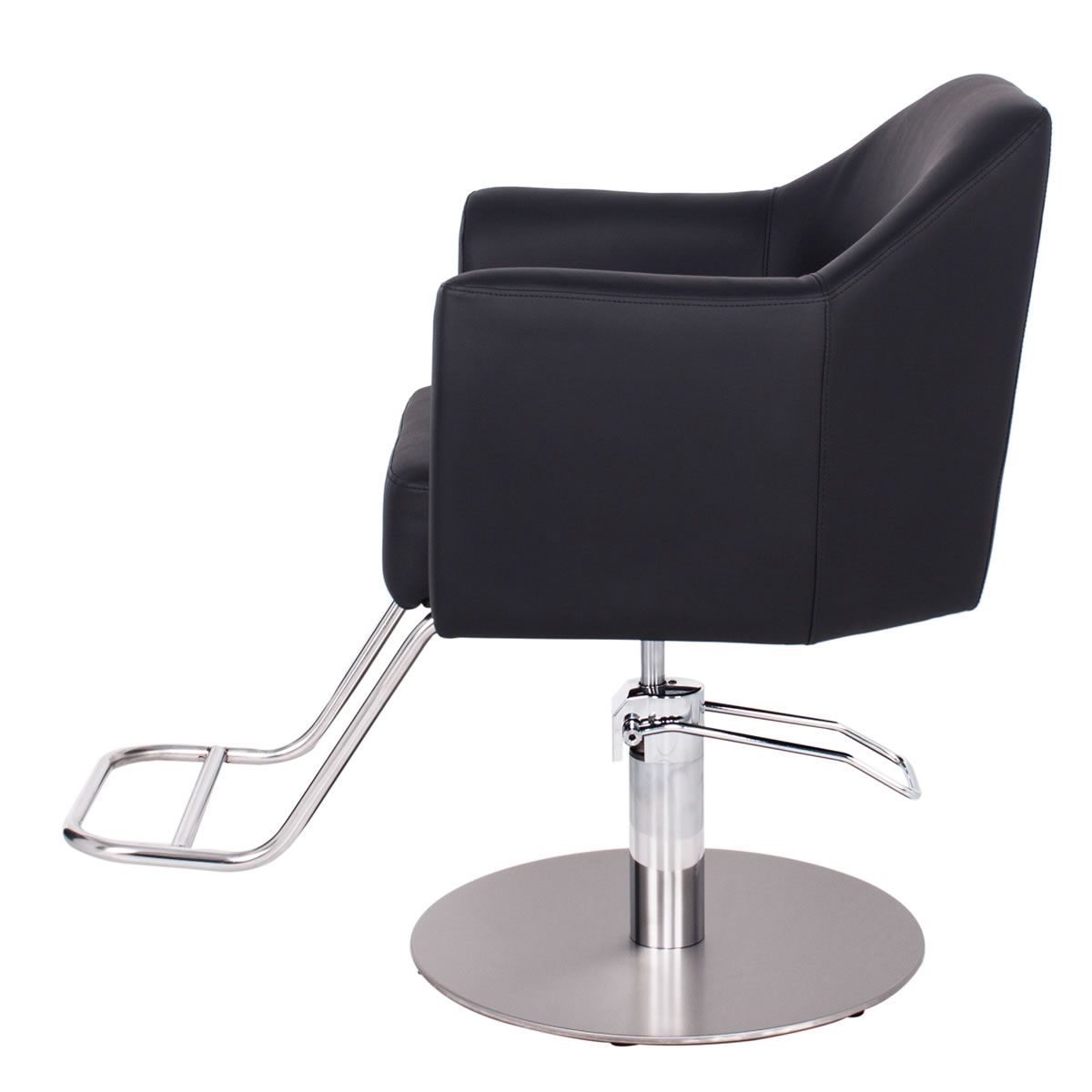 "AUSTIN" Salon Styling Chair (SKU: B-804) ***** This chair is on smaller side - the width between the armrests is about 19" ***** - 1-year warranty on the chair, 2-year warranty on the hydraulic base - Available in Soft Black and Soft Grey - Top grade smooth vinyl resembles touch of real leather - Molded high density memory foam for extra comfort and longer duration of use - Extra large U-shaped footrest - Stainless steel disc base in matte finish - Some assembly required |