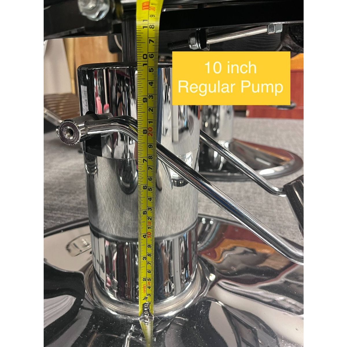 This base has a rounded edge that is well balanced and prevents foot injuries. It has a sleek finish with a simple foot action pump. - Metal plate of gloss chrome finish - Stainless pump pedal - Rubber ring base guard - Over-sized base plate and extra thickness to ensure stability - Fits mainly with barber chairs - Max weight allowed: 800 lbs "Lower Height Hydraulic Pump Kit" is 2 inches lower than our regular barber chair pump. This kit is usually sold as replacement for customers who already bought AGS barber chairs but want to reduce the height of the chair. Such shorter pump will be sold with shorter footrest pegs as well as shorter pump pedal as a kit . |