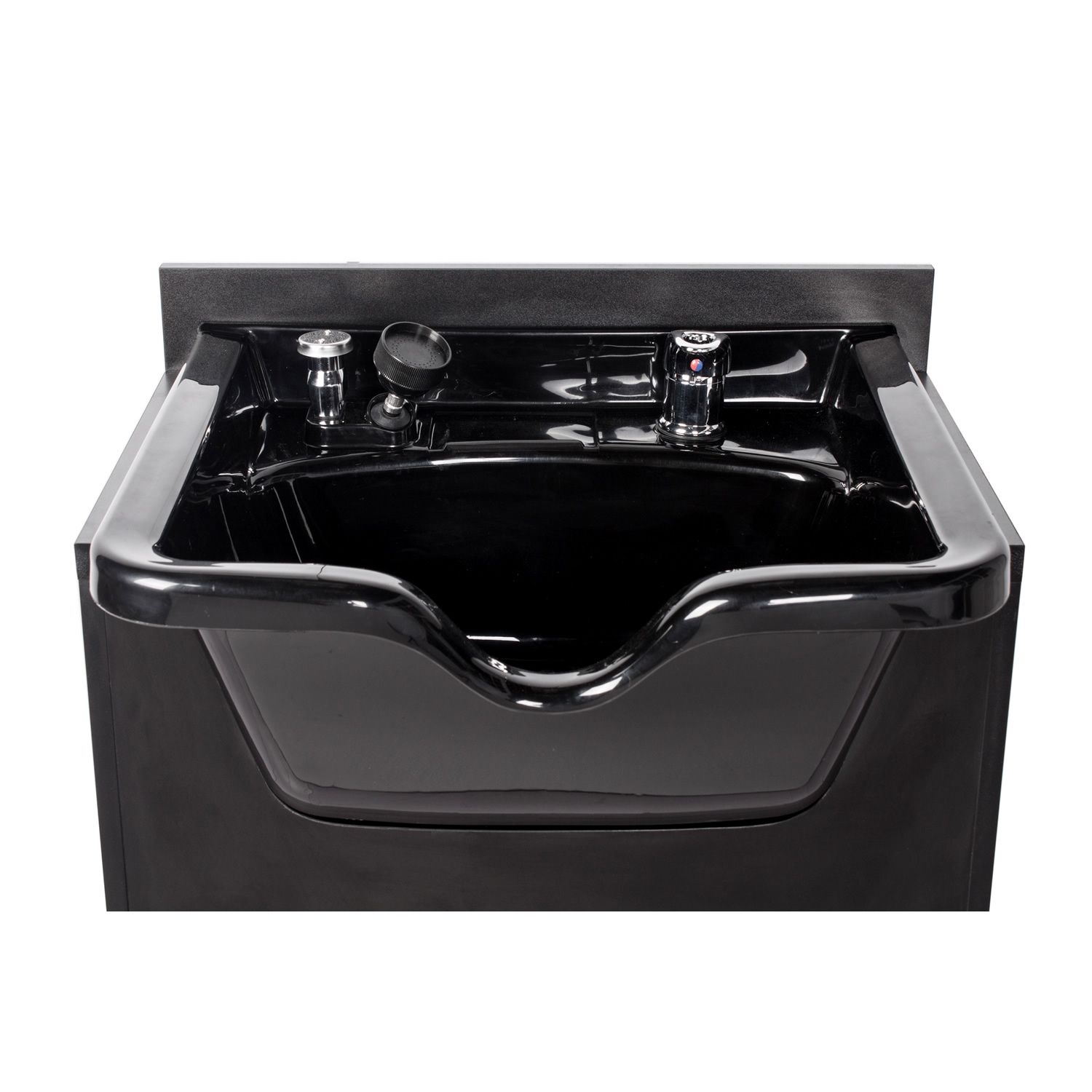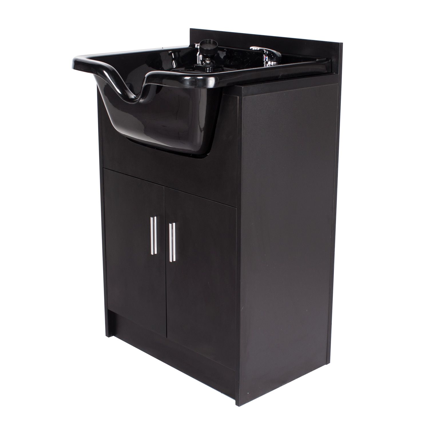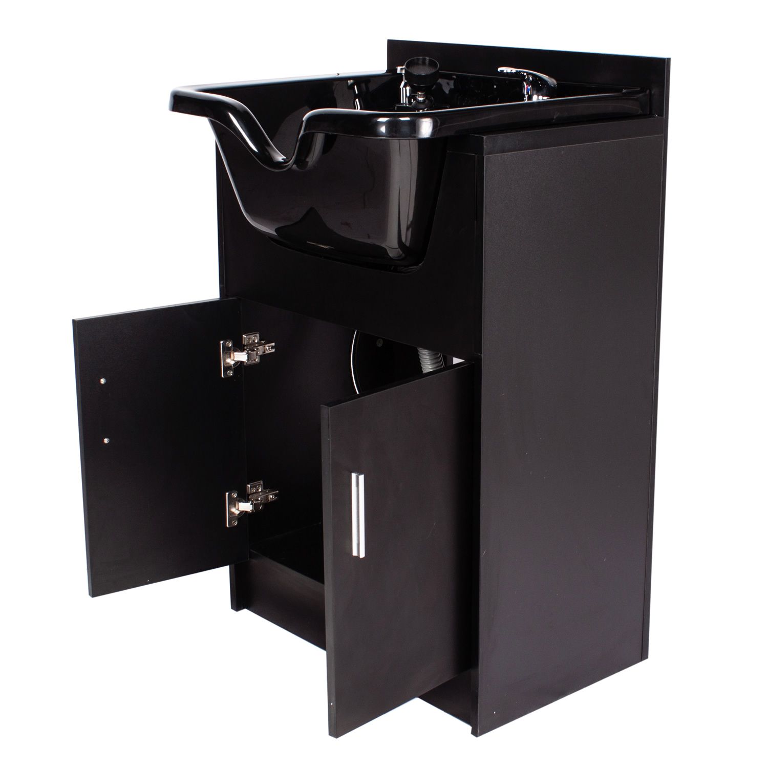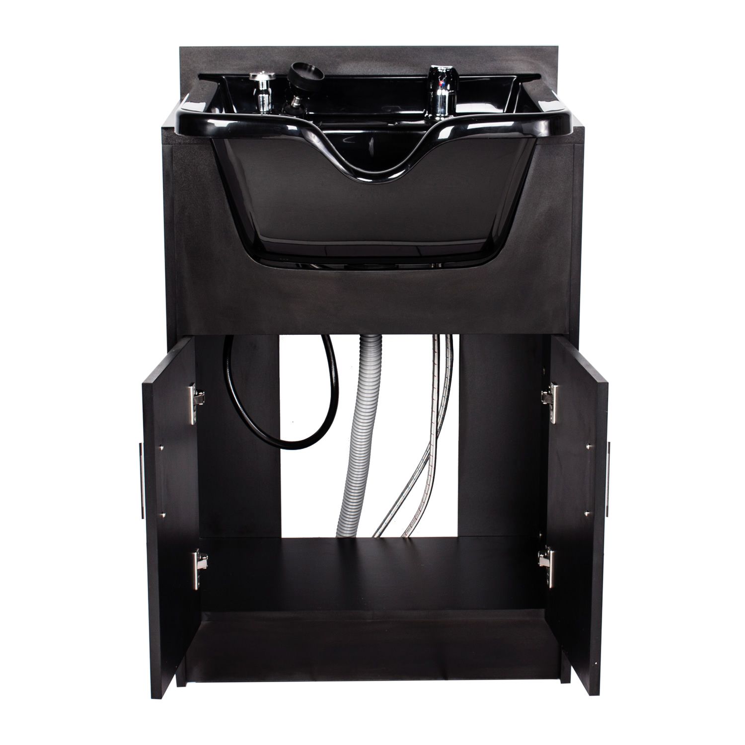 - Cabinet made of quality laminate material - Available in 2 colours: Wild Cherry and Matte Black - Built-in plastic shampoo bowl - Full set of fixtures included - faucet, vacuum breaker, sprayer and drainer hose - Storage space underneath the shampoo bowl |