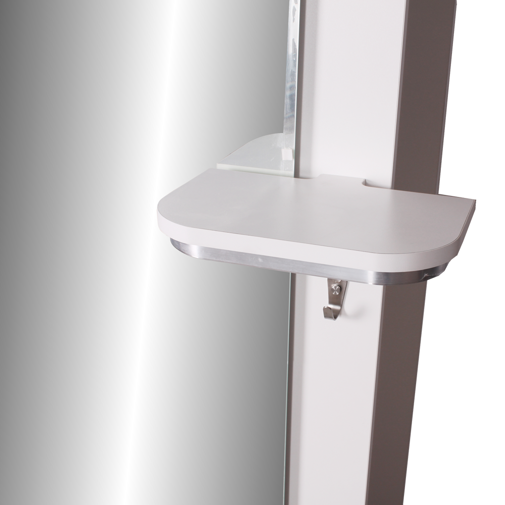"BURANO" Double Sided Styling Station (SKU: I-061D) - Constructed from high-quality laminate material for durability - Front panel features a raised mirror, a small shelf, and a handbag hook for convenience - Ample storage space on both sides to keep your tools and products organized - Pull-out appliance drawers on both sides of the station for easy access - Appliance drawers include three round holders (3", 2", 1.5") and one square holder (2.5") for various styling tools - Includes a complementary power outlet; power cords are not included - Electric cords can be routed through the holes in the top, back, or bottom of the station for seamless integration Important: This is a very heavy item and will be shipped via freight. The standard shipping method is CURBSIDE DELIVERY, which means the shipment will be delivered to the curbside of your address. With our liftgate service, the truck driver will lower the pallet to the ground. However, it is NOT the responsibility of the driver to bring the shipment inside or assemble it. You will need to break down the pallet and move the boxes inside. Due to the weight and size of the shipment, it is recommended to have two or more people available to assist with this process. |
