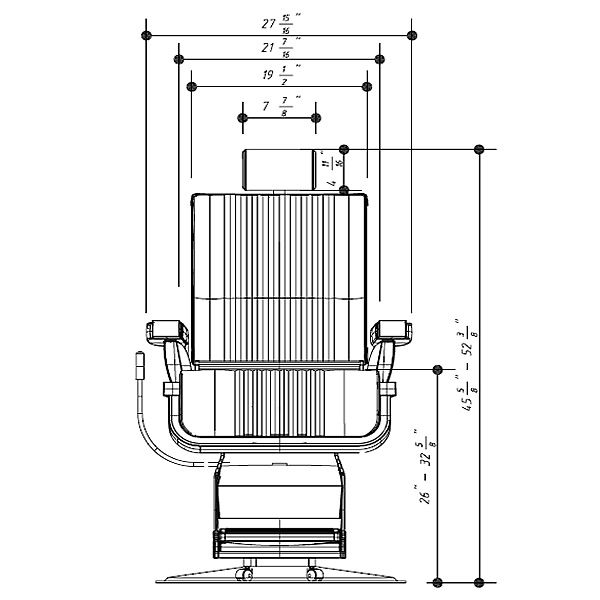 W: 28" Arm to Arm: 21.5" Depth of Seat: 20.5" H: 45".5" Seat to Ground: 26" Diameter of Base: 26.8" Adjustable Height of Pump: 15.8" ~ 22.6" Please click on the thumbnails on left hand side for detailed dimensions. |