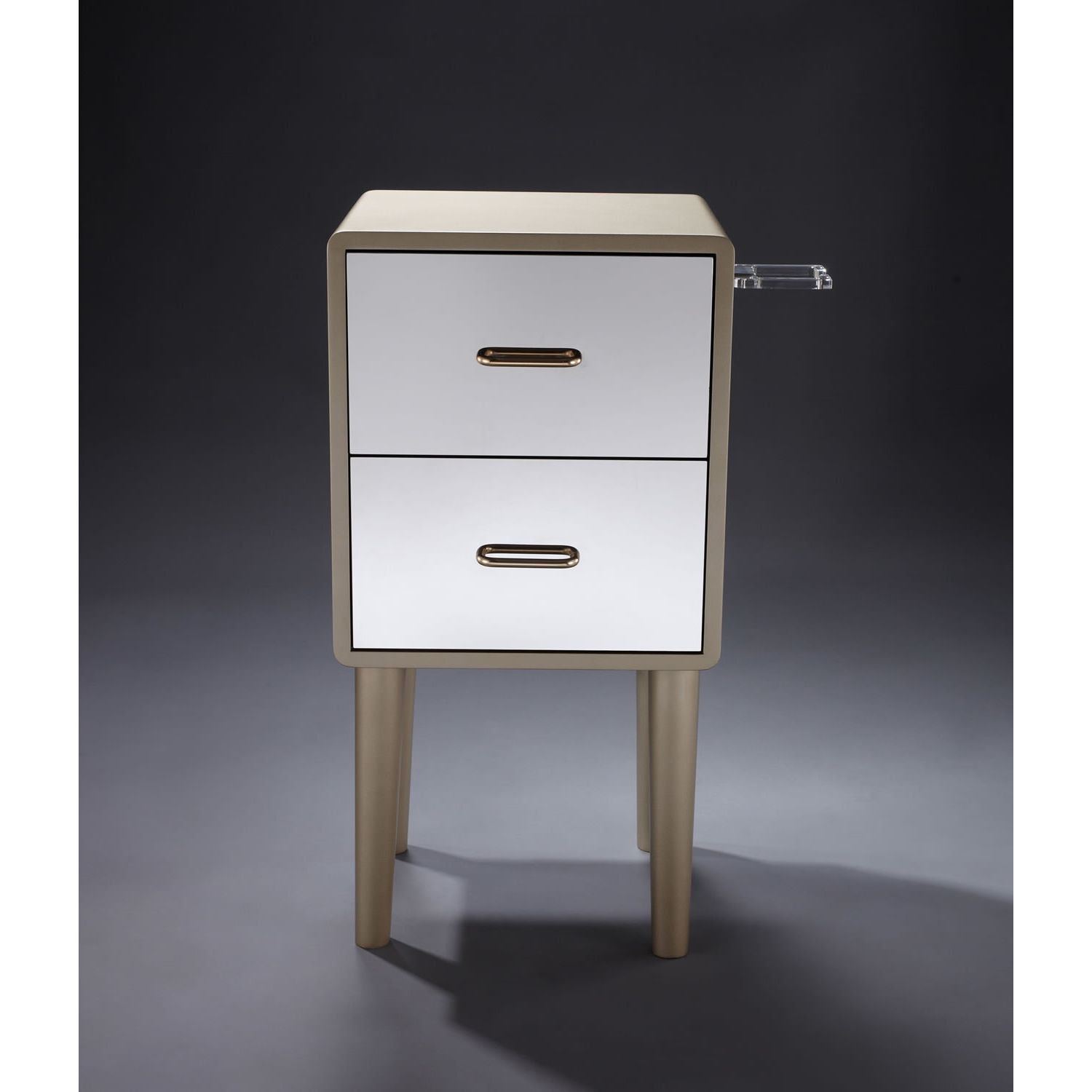 "FELIX" Side Station in Gold (SKU: I-091G) - Salon side station with acrylic dryer holder included - Black lacquer surface with white accent panel - Price does not include the wall mount mirror or the salon chair Dimensions: 15.8 (W) X 13.7" (D) X 31" (H) |