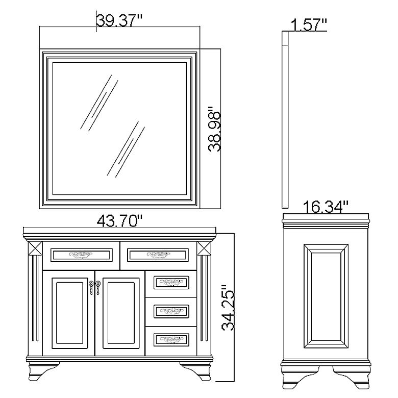 Mirror: 40" X 40" Cabinet: 43.7" (W) X 16.4" (D) X 34.3" (H) |