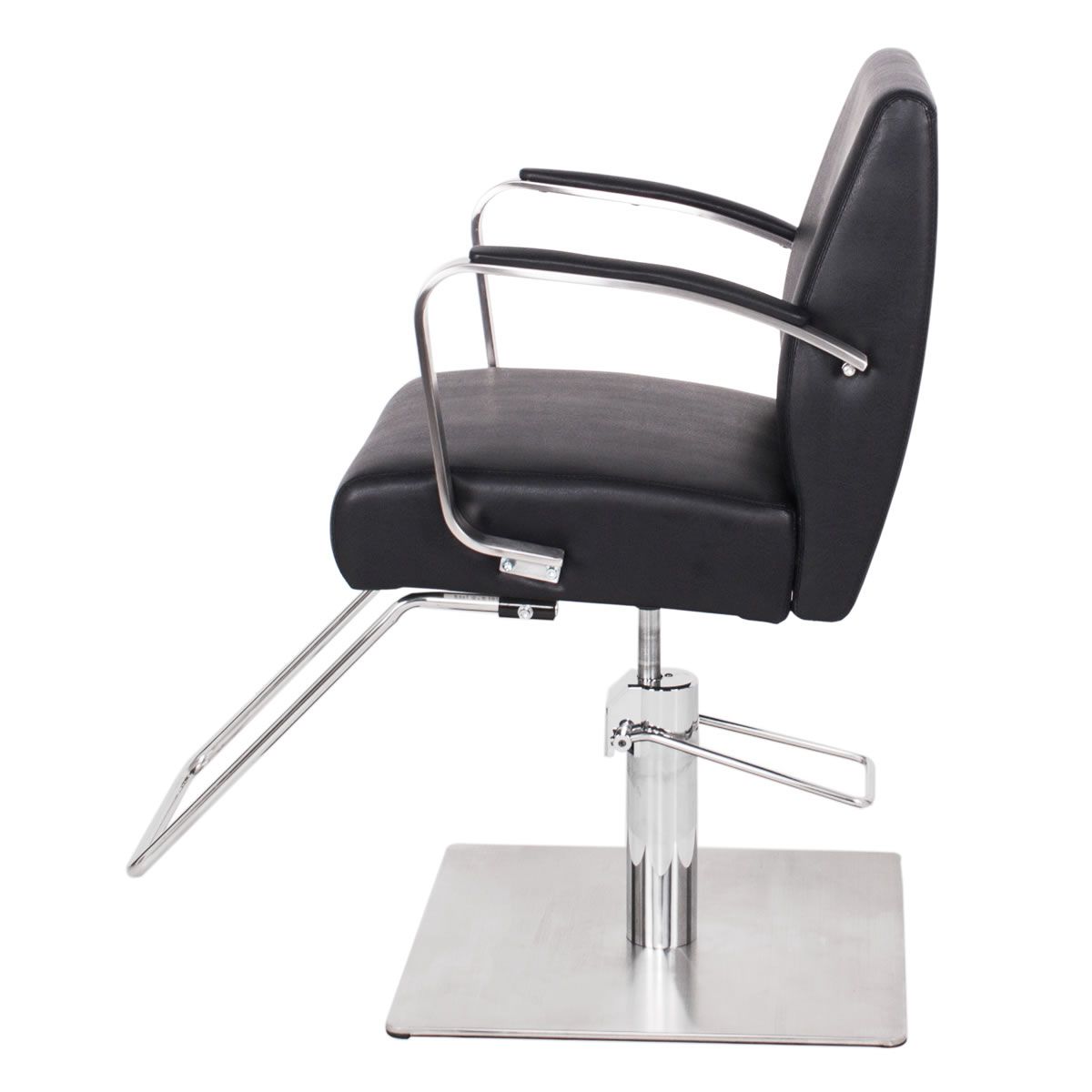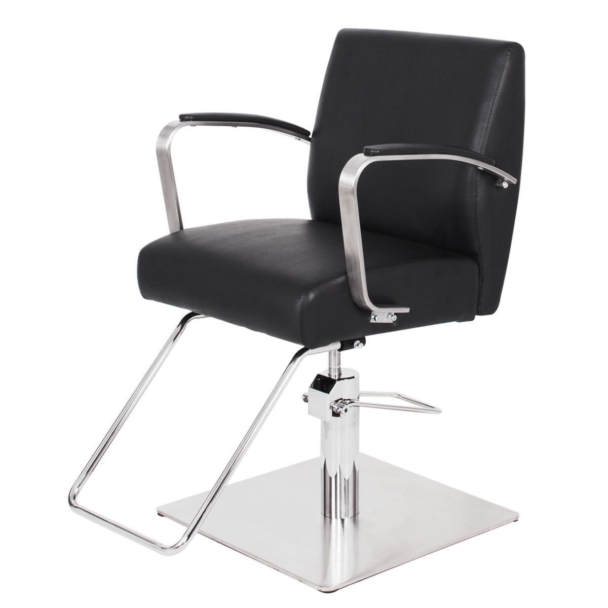 "HOUSTON" Hair Styling Chair (SKU: B-007) - 1-year warranty on the chair, 2-year warranty on the hydraulic base - Top grade smooth vinyl resembling touch of real leather - Molded high density memory foam for extra comfort and longer duration - Stainless steel arms in matte finish, with fabric-covered pad - Some assembly required |
