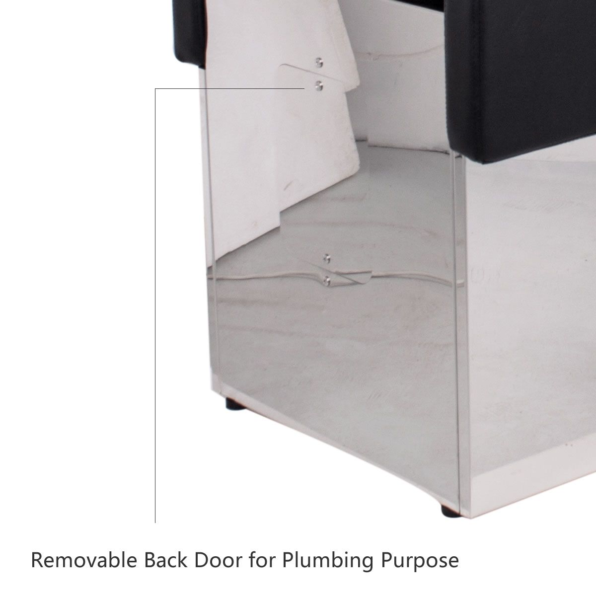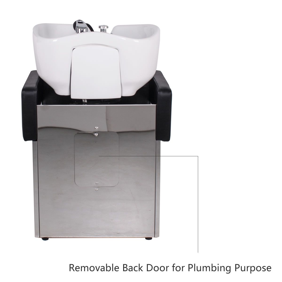 "LONG BEACH" Luxury Shampoo Backwash Unit With Stainless Base (SKU: G-801) - 1-year warranty on the whole unit (including fixtures like faucet, sprayer, vacuum breaker, hoses, etc.) - Grey upholstery - Top grade smooth vinyl, feels like real leather - Full set fixtures (chrome faucet, sprayer, vacuum breaker and hoses) are included - $138.00 worth ! - Silicone gel neckrest - Adjustable tilting shampoo bowl comes in black (Optional: White) - Base is made of polished stainless steel material - The back door is removable for easy plumbing - The plumbing goes either into the ground, or through the back door to the wall - It's suggested that you speak with your plumber prior to purchasing a shampoo bowl or backwash unit, as local jurisdiction may have their own code for how plumbing needs to be installed. - Some assembly required Important: This is a very heavy item and will be shipped by Freight. The standard shipping via freight is CURBSIDE DELIVERY. This means that would be delivered to the curbside and it is NOT the responsibility of the truck driver to unload or assemble your shipment. It will be entirely your responsibility to remove the item off of the truck and bring it inside. Your shipment will be heavy and may require 2 or more people to unload the shipment. |