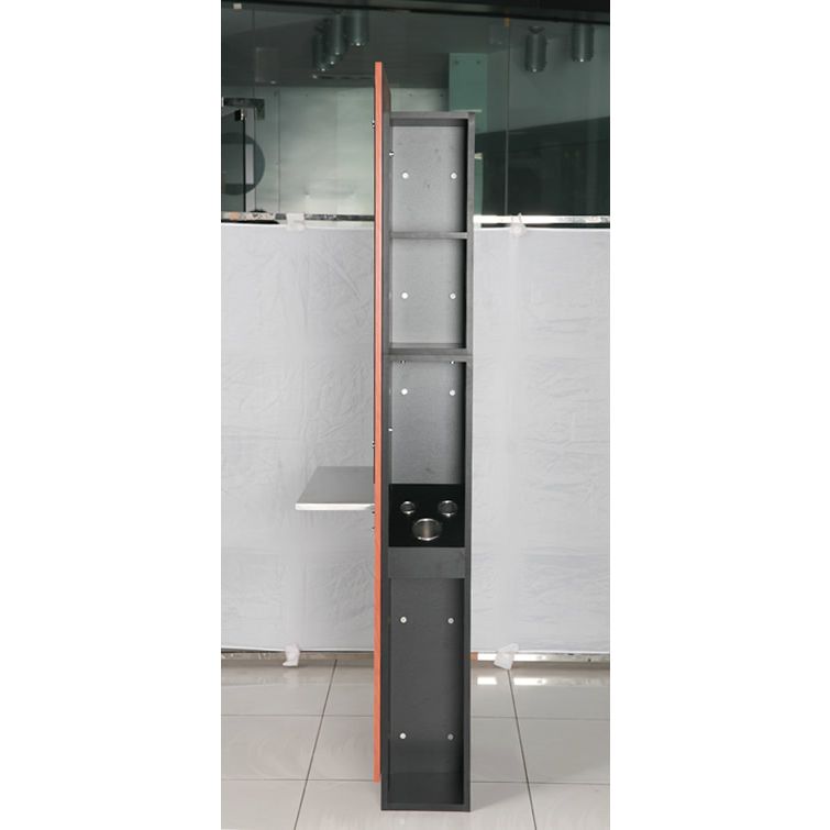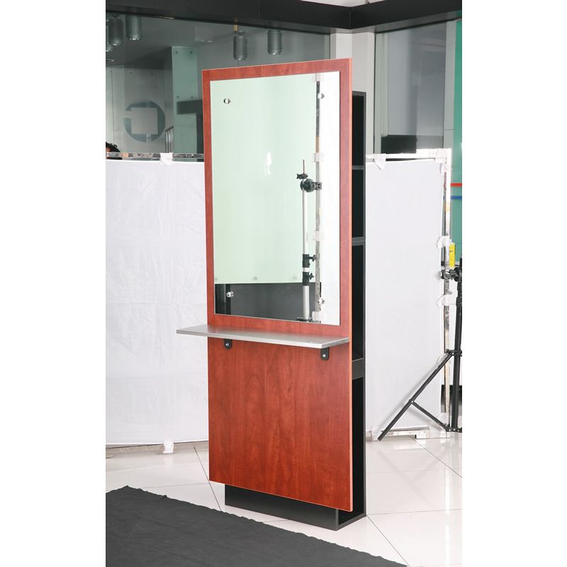 "MADURA" Single Styling Station (I-016) The "MADURA" styling station offers an elegant look to your salon. It is a station with storage on either side including with shelf with appliance holders. - Wild Cherry panel with stainless ledge (Optional: Matte Black Panel) - Ultra flat mirror - Four shelves offer ample room for tools, hair dryers, etc. - The tools board on the right side includes 3 holders for hair dryer and tools and can be pulled out IMPORTANT: This station does not come with power outlet or electrical cords. |
