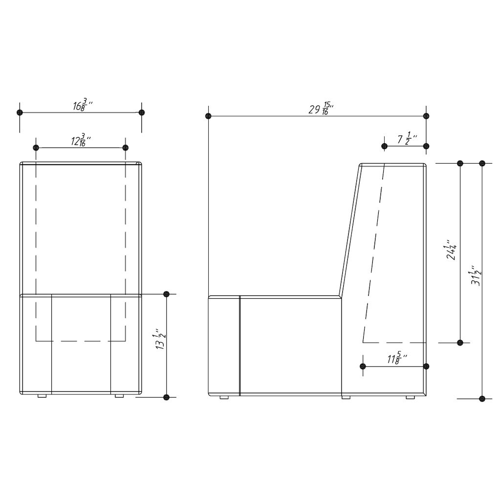 Width of Seat: 25.7” Inside Seat Width: 20” Depth of Seat: 24.3” Height of Seat: 18.5” Dryer Chair Base: 30" (L) X 16.5" (W) X 31.5" (H) Back Opening: 12.2" (W) X 7.5" (D) X 24.2" (H) Please click on the thumbnails to view detailed dimensions. |