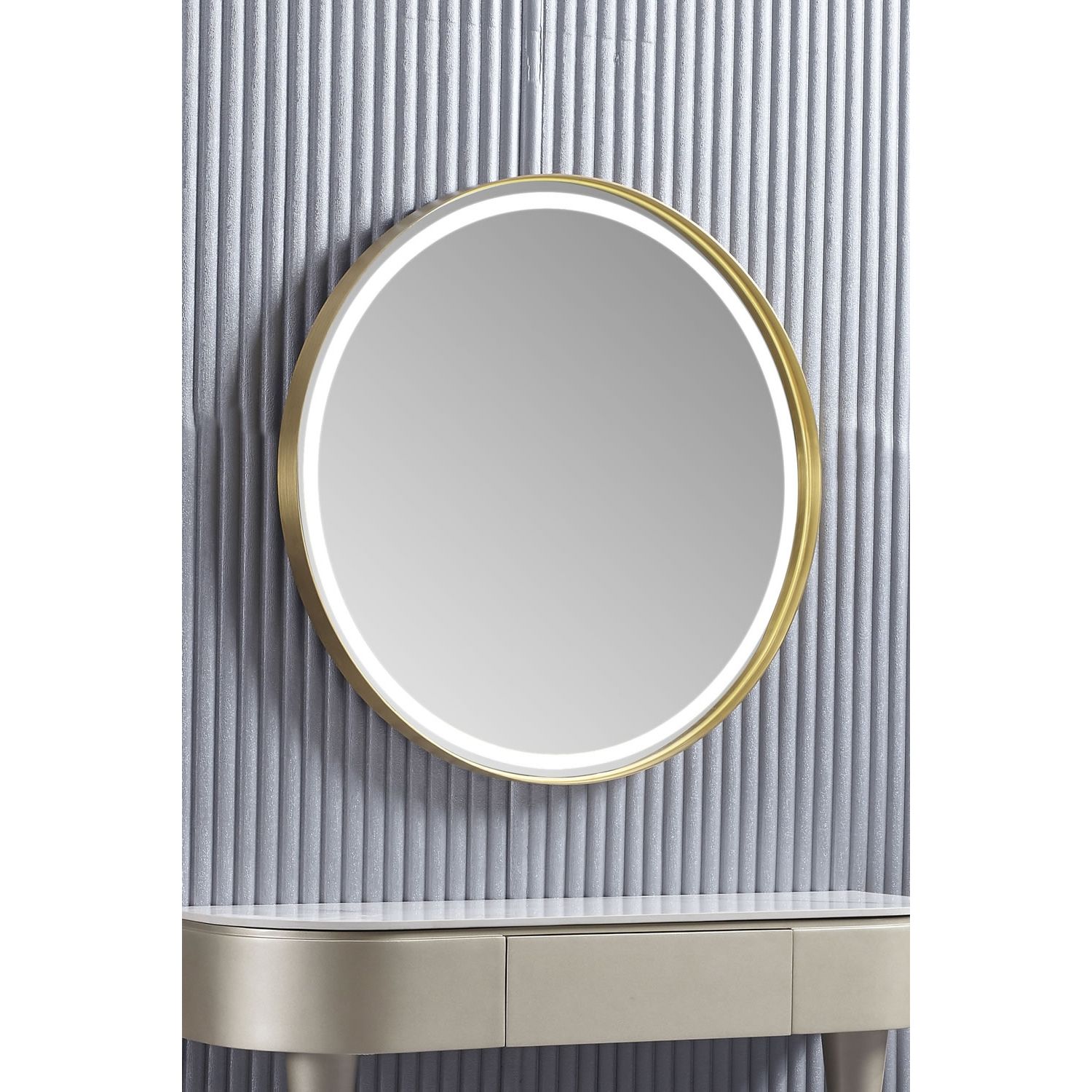 "MAUNA KEA" Stainless Styling Station in Gold with LED Light (SKU: I-083) - Wall mount styling mirror with golden frame - White LED light in the front of the mirror - Touch on/off control in the mirror - Price does not include the station as shown in the picture DIA = 30.5" |