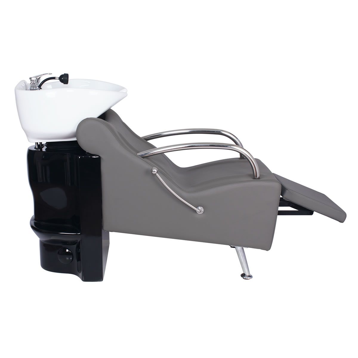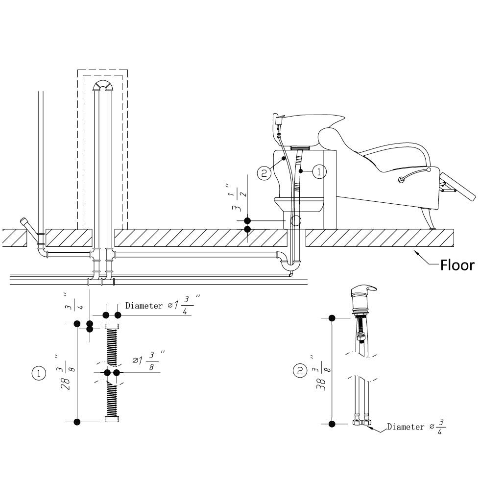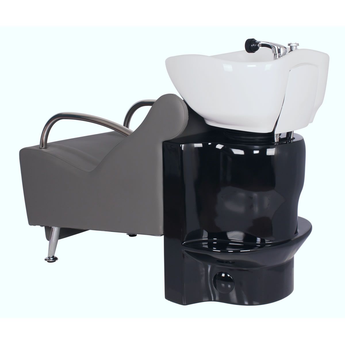 "NEREUS" Shampoo Backwash Unit (G-001) This elite backwash shampoo unit with footrest has smooth upholstery and chrome metals creating a contemporary piece bringing the look into any salon. It has a footrest that lays flushed against the seat and can be easily raised with a side lever. The sink support has flat surfaces to place items on making it more convenient for hairdressers therefore not walking off to retrieve products and more time with clients. - 1-year warranty on the whole unit (including fixtures like faucet, sprayer, vacuum breaker, hoses, etc.) - Available in Premium Black and Grey - Arms and legs made of finely polished stainless steel - Full set fixtures (Chrome faucet, sprayer, vacuum breaker and hoses) are included - $138.00 worth ! - Silicone gel neckrest - Adjustable tilting shampoo bowl comes in black or white - Water-proof fiberglass base in silver or black - The seat is removable from the base for easy plumbing - The plumbing goes either through the base into the floor, or through the holes at the sides of the base - It's suggested that you speak with your plumber prior to purchasing a shampoo bowl or backwash unit, as local jurisdiction may have their own code for how plumbing needs to be installed. - Some assembly required Important: This is a very heavy item and will be shipped via freight. The standard shipping method is CURBSIDE DELIVERY, which means the shipment will be delivered to the curbside of your address. With our liftgate service, the truck driver will lower the pallet to the ground. However, it is NOT the responsibility of the driver to bring the shipment inside or assemble it. You will need to break down the pallet and move the boxes inside. Due to the weight and size of the shipment, it is recommended to have two or more people available to assist with this process. > Download Plumbing Instructions |