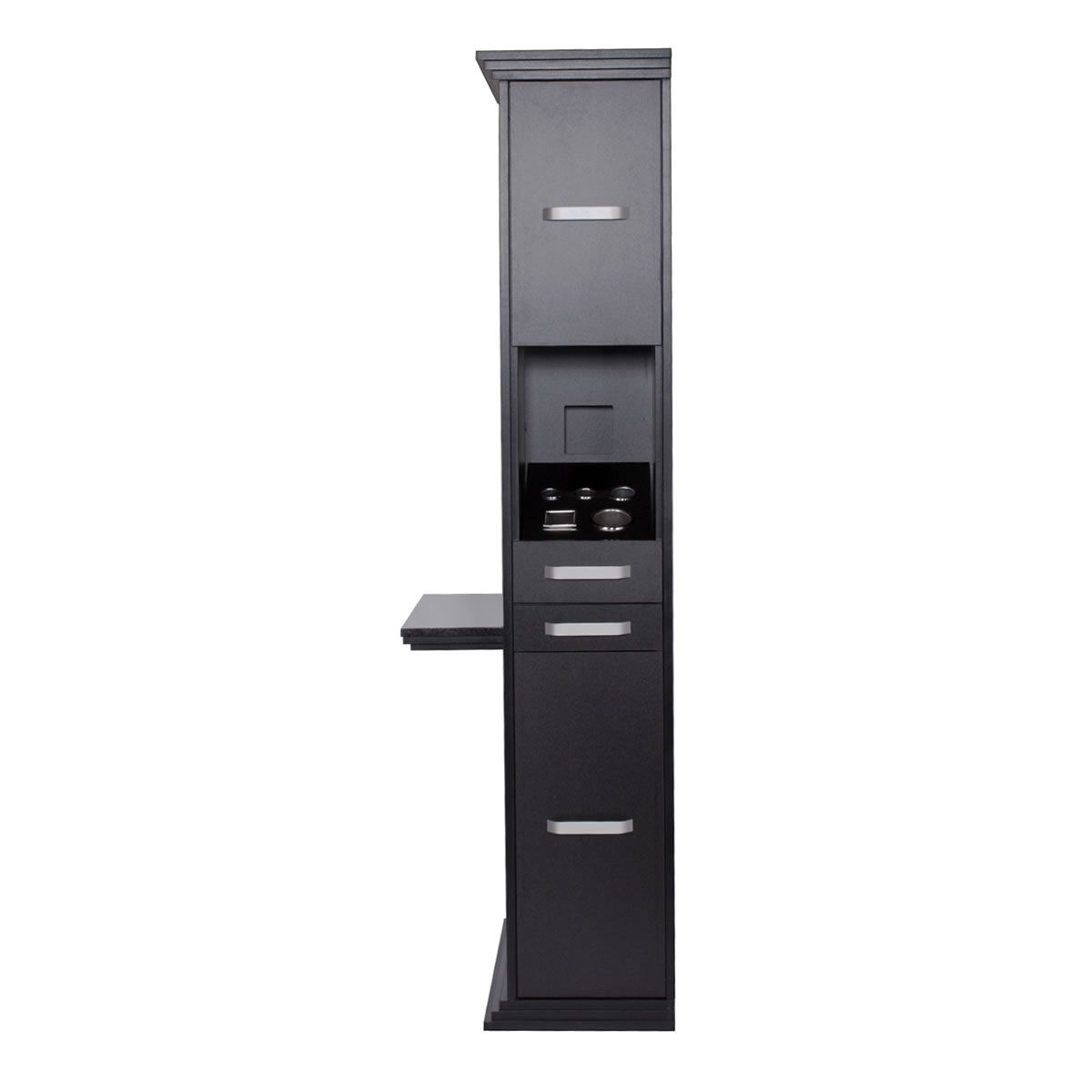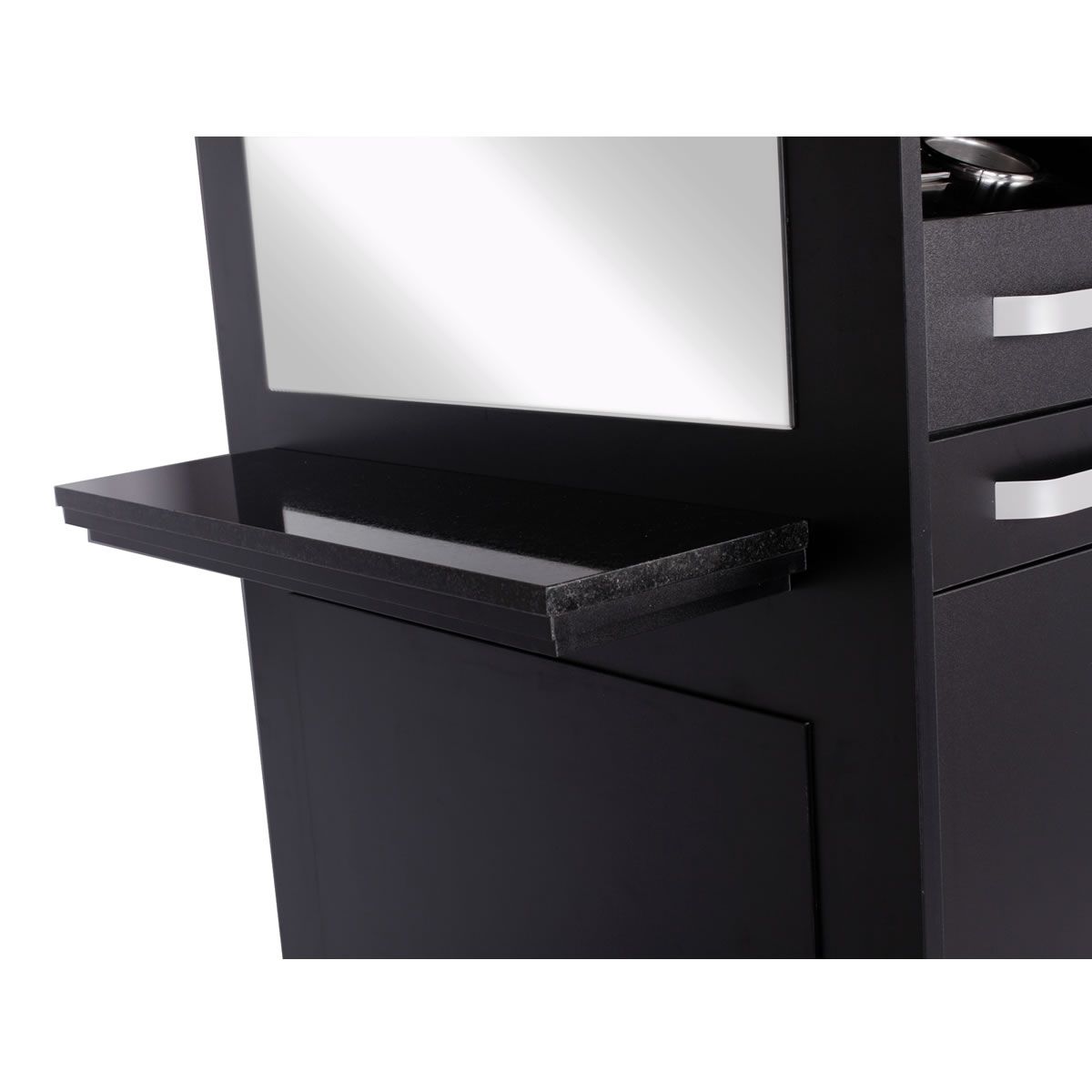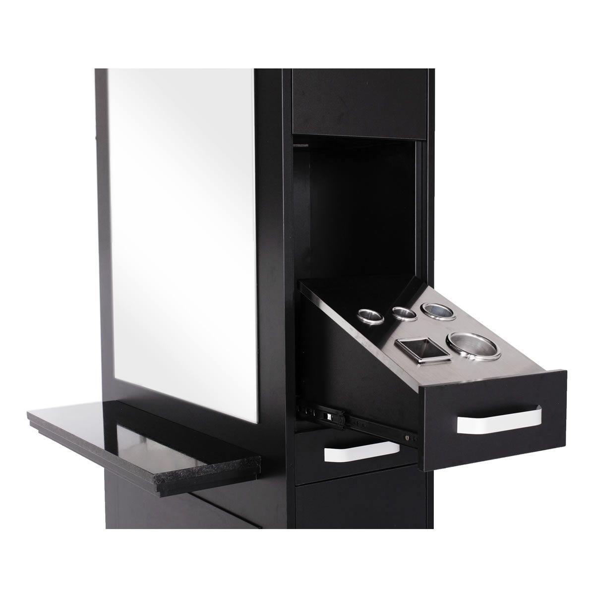 "SIENA" Single Sided Styling Station (SKU: I-058A) Elevate your salon with the "Siena" styling station. Make your salon look good while you are making your customers look good. The single sides will maximize the use of your floor space. Quality materials are used throughout including soft closing hinges for the doors. - "Siena" (SKU: I-058A) is a single sided station featuring storage cabinets and drawers on both sides. - The sliding tool drawer is located on the right side only (when facing the mirror), which features 3 iron holders (1.5", 1.5", 2"), 1 clipper holder (2.2" X 2.2"), and 1 blow dryer holder (3"). - This station is available in matte black with black granite shelf, or matte white with white granite shelf. - This single-sided station must be secured to the wall with bracket provided. - Power can be supplied via openings in the top or the bottom of the station. Power outlet or cords are NOT included. - 1-year warranty This is a very heavy item and will be shipped by Freight. The standard shipping via freight is CURBSIDE DELIVERY. This means that would be delivered to the curbside and it is NOT the responsibility of the truck driver to unload or assemble your shipment. It will be entirely your responsibility to remove the item off of the truck and bring it inside. Your shipment will be heavy and may require 2 or more people to unload the shipment. |